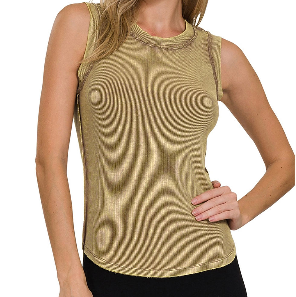 Mocha Ribbed Scoop Neck Tank